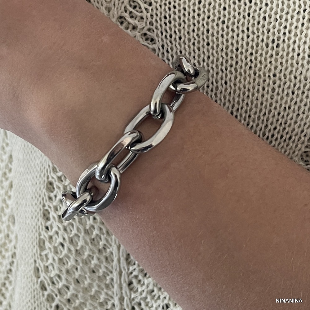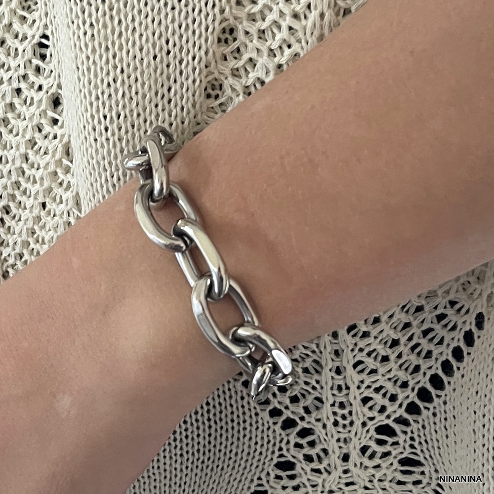 Le bracelet oversize est un incontournable pour les amateurs de mode audacieuse. Ses maillons ovales larges captent immédiatement l’attention. L’acier inoxydable garantit non seulement une grande durabilité, mais aussi un confort optimal, même lors d’un port prolongé.