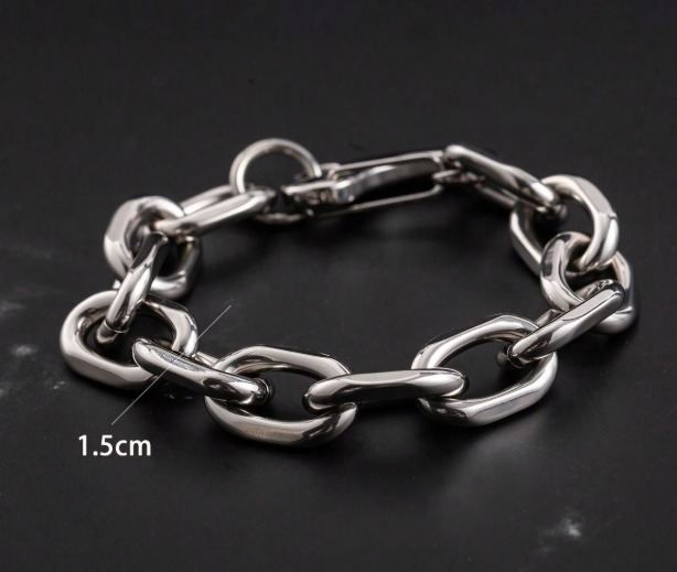 Ce bracelet est idéal pour compléter une tenue décontractée ou ajouter une touche de caractère à une tenue plus habillée. Son design en grosse maille ovale en fait un bijou incontournable pour ceux qui recherchent un style puissant.
