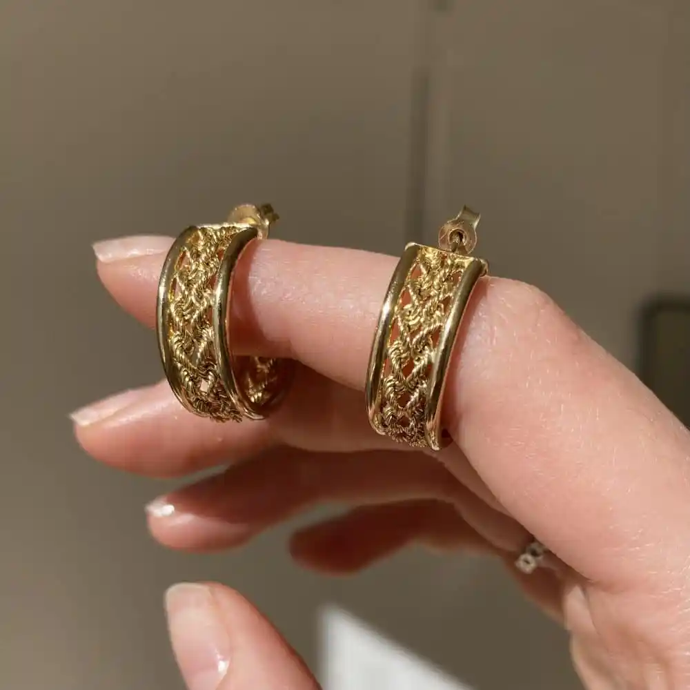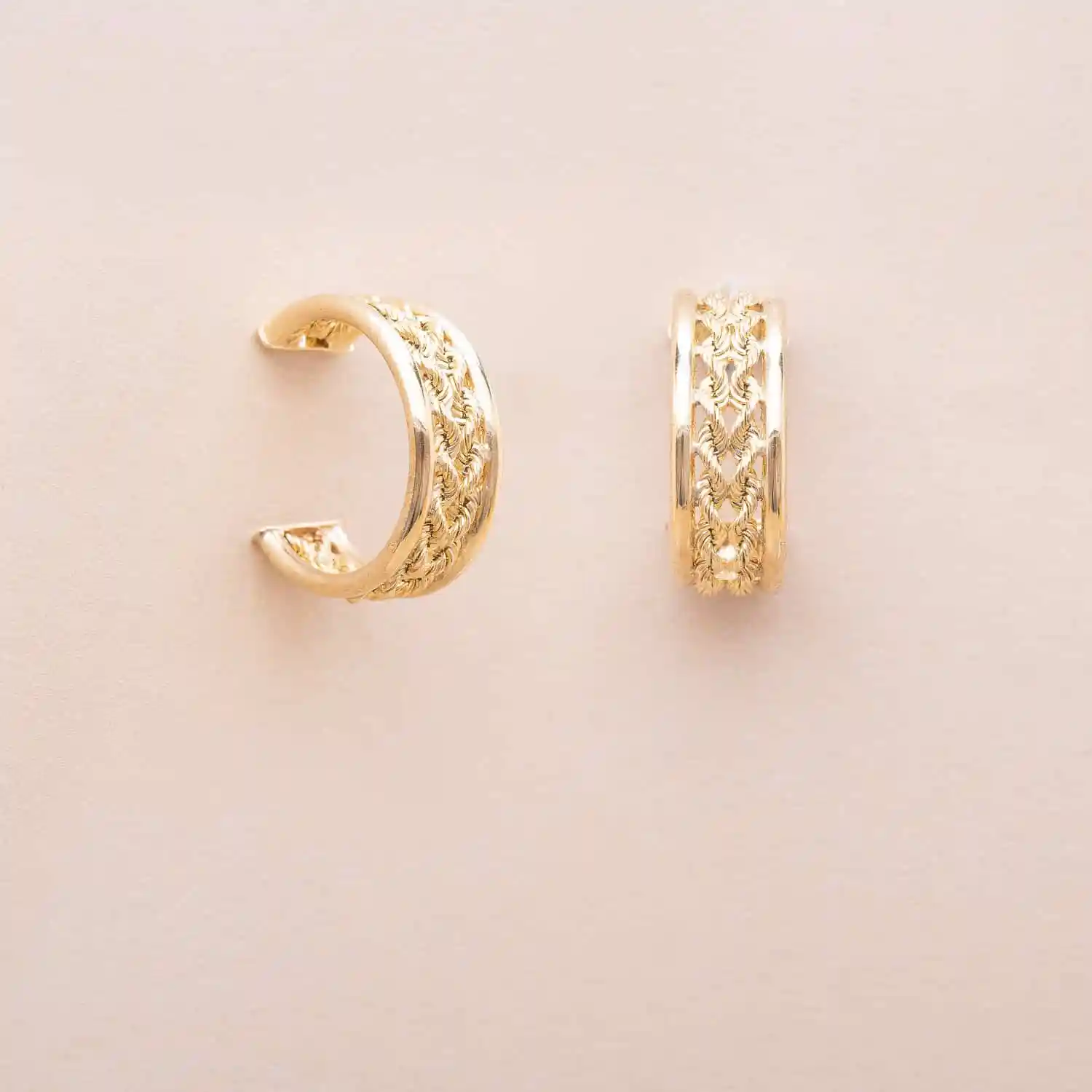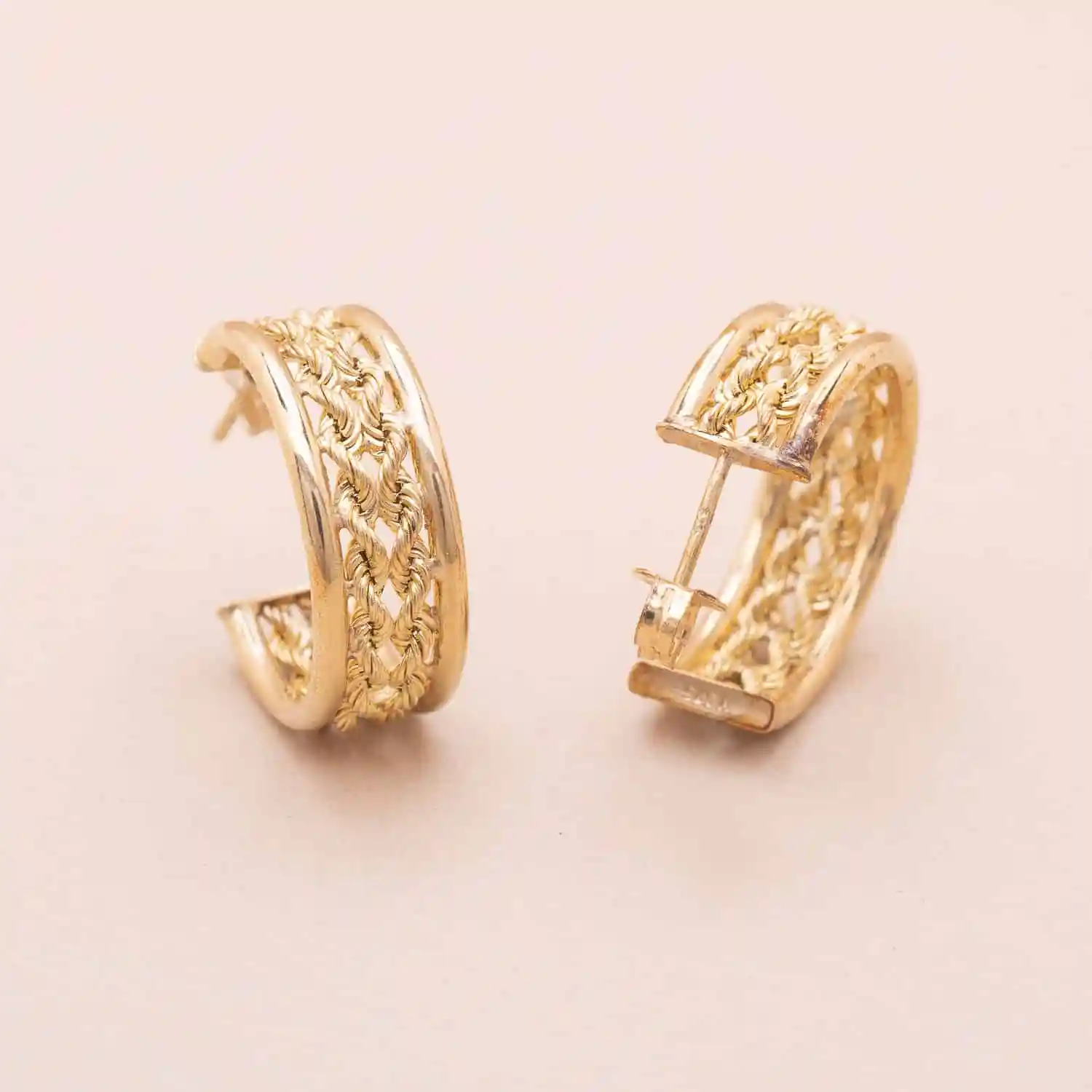 Paire de créoles en or jaune 9K (375°/00) à motif de cordes tressées