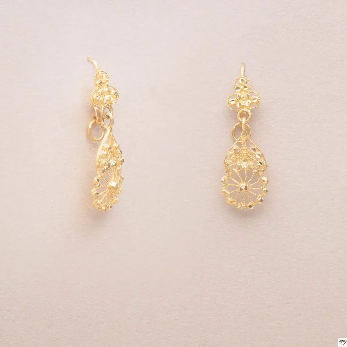 Paire de pendants d’oreilles en or jaune 800°/00 composé d’un motif de trèfle retenant une rosace