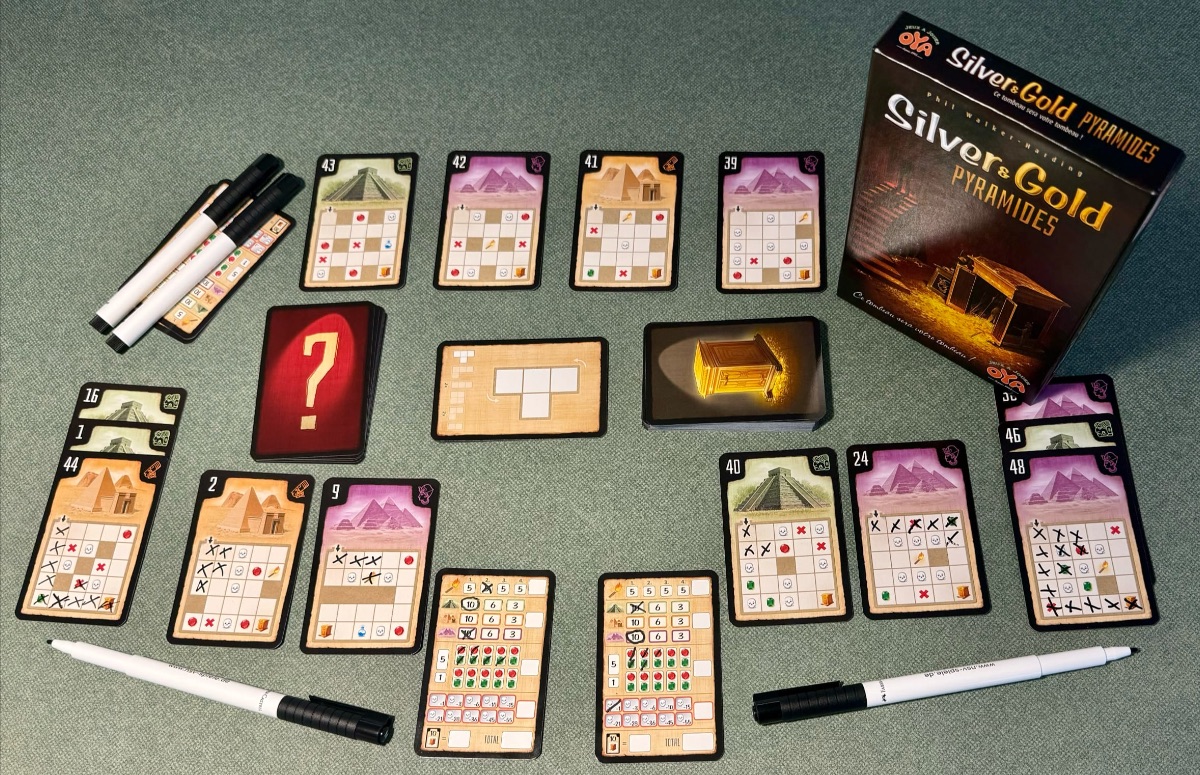 Silver And Gold est un jeu tactique et stratégique où vous utilisez des polyominos pour explorer entièrement des îles et gagner ainsi divers bonus, il n’y a pas de case punitive, c’est que du bonheur. Mais dans Silver And Gold Pyramides, on est sans arrêt partagé entre aller vite ou continuer à explorer pour ramasser des bonus, et, aller vite signifie souvent passer sur des têtes de mort, et ça fait mal !