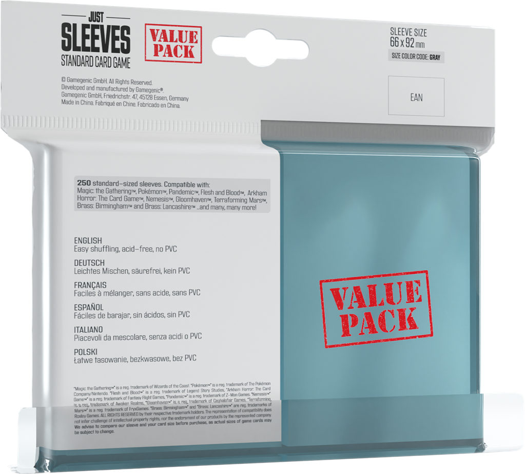 SLEEVES – GG – 250 Just Sleeves – Value Pack Clear